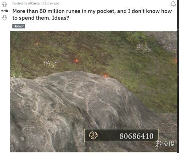 在遊戲中囤了一堆消耗品道具卻捨不得用的玩家被稱為「倉鼠玩家」,近日一位《艾爾登法環》玩家(Reddit用戶CaelanIt)曬出了一張截圖,他已經攢了超過8000萬的「盧恩」未使用(總共80686410),這是一個離譜的數字,一時間登上《艾爾登法環》Reddit板塊的熱門。