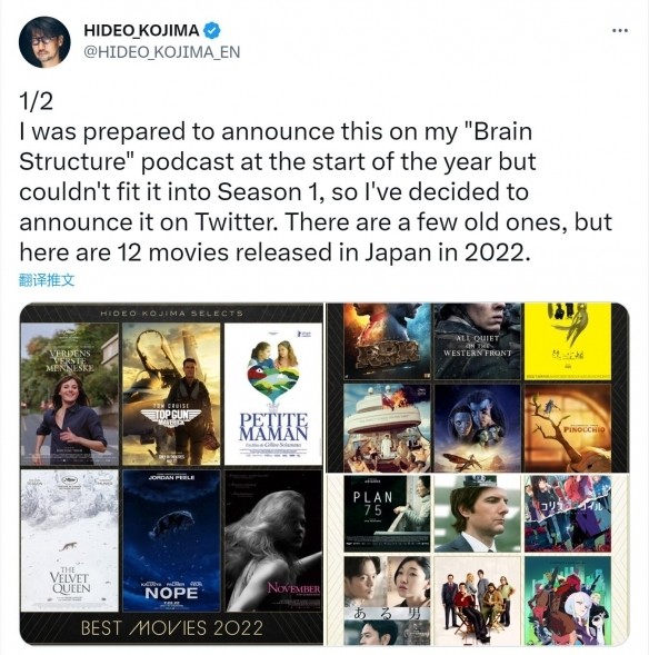 近日,知名自由游戲製作人小島秀夫在個人推特上發表了個人22年度觀影推薦。