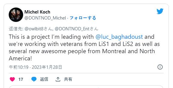 ·本作將由DON'T NOD的蒙特利爾工作室負責打造,目前游戲類型不明,《奇異人生》一代、二代的製作人Luc Baghadoust與導演Michel Koch將主導遊戲的開發,從透露的畫面來看游戲的氛圍看上去近似《奇異人生》的新作,不過也有消息稱會是一款全新IP,敬請期待後續報道。
