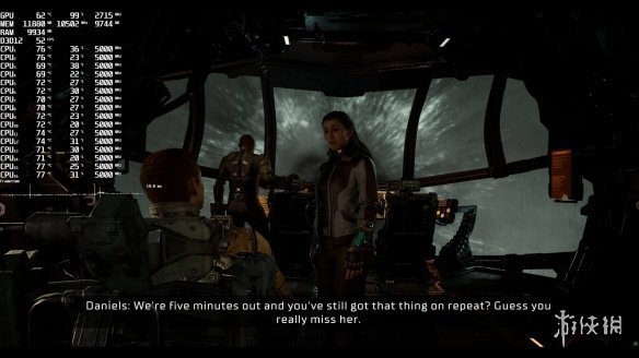 其次,關於游戲的性能運行表現,在該作的序章場景中,在4K解析度/最高畫質下,RTX 4090也只能達到50幀。而我們可以從評測圖片中看到,此時顯卡GPU的利用率已經達到了100%,所以不存在CPU的瓶頸問題。所幸的是,當你進入石村號(USG Ishimura)後,游戲的性能運行表現就會有所改善了。不過在某些場景中,比如屍變體(Necromorph)攻擊船員時,游戲的幀數還是會跌至60幀以下。