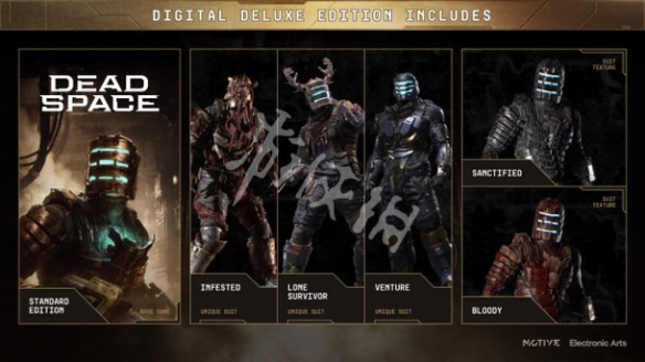 死亡空間重製版的數字豪華版包含基礎遊戲以及和5款專屬的裝扮。專屬的裝備有3款獨特的套裝以及和2款套裝紋理。可以幫助玩家在USG石村號上,面對不同困難時的裝備需求。