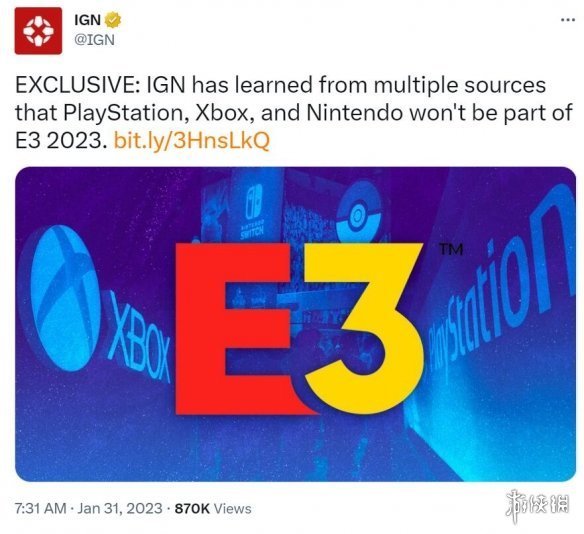 2023年6月的E3展將在洛杉磯舉行。據IGN最新消息,索尼PlayStation、微軟Xbox和任天堂三家游戲大廠今年全都不會出席E3展!