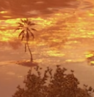 將這部分放大之後就能看到一顆椰子樹,而且是吊著一個人的椰子樹。