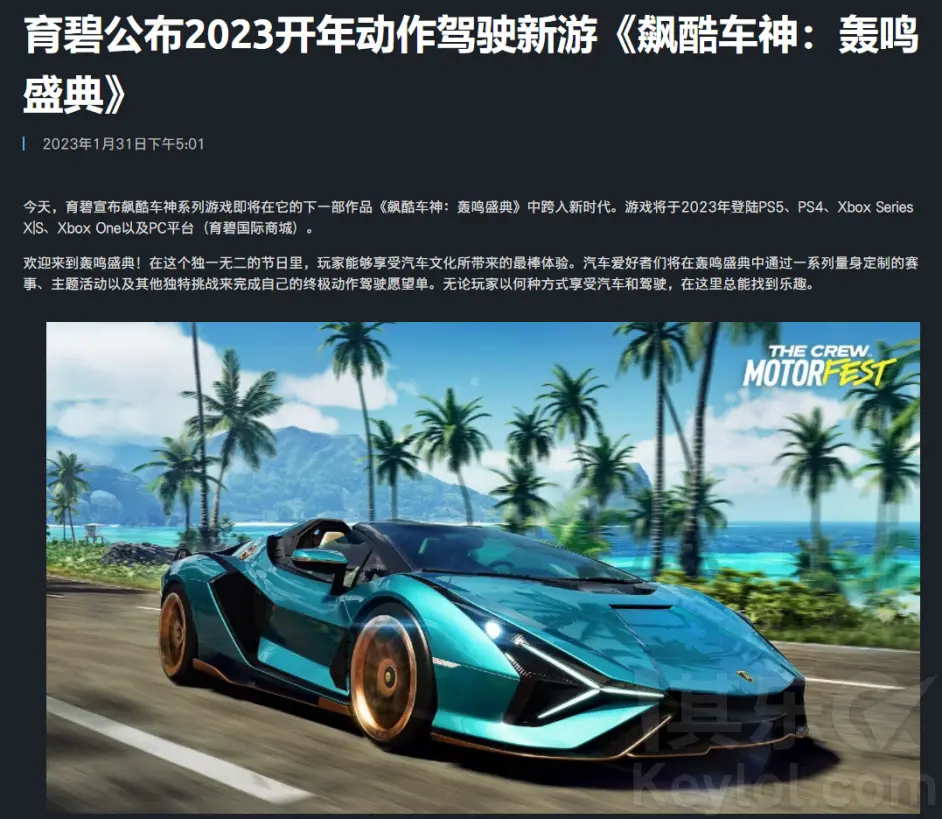 育碧宣布《飆酷車神3/The Crew:Motorfest》將於2023年推出,登陸 UBI、EPIC、 Xbox Series X|S、Xbox One、PS5、PS4官網:https://zh-cn.ubisoft.com/games/crew