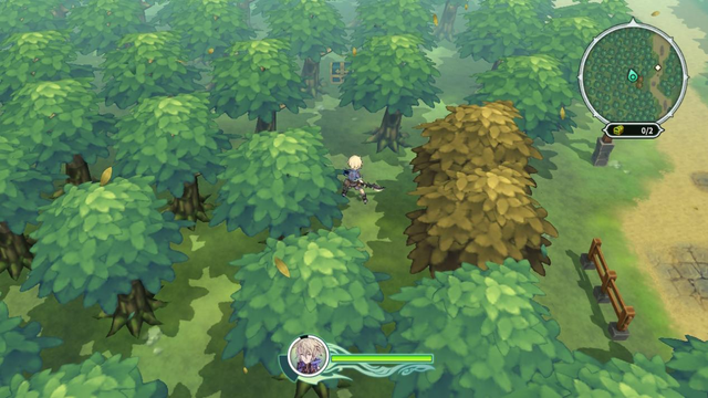 為了達到這樣的效果,《聖塔神記》設置了大量與地圖風格相符的視覺引導。譬如在森林中,玩家身處被綠色樹木包圍的地圖,地圖中央理所應當地鋪設著所謂的「林間小道」。可如果玩家仔細觀察,就能發現路邊存在有別於周遭環境的黃色樹木,從中穿過繼續前進就能發現地圖中隱藏的寶箱。