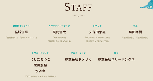 參與過《Chrono Cross》角色設計的結城信輝、在《異度神劍》的美術方面活躍的風間雷太、負責了《歧路旅人》部分劇本創作的久保田悠羅、為《聖劍傳說》譜曲的菊田裕樹。即便《聖塔神記》只是一部中小體量的全新作品,但畢竟匯集了如此豪華的陣容,引起玩家們的關注也是理所應當的。