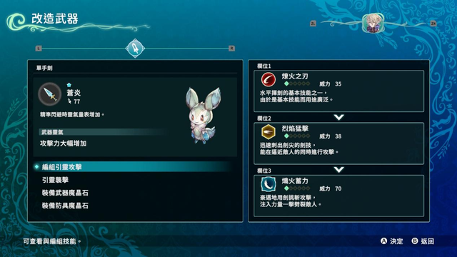 同時,遊戲還為每種武器都設計了可以自由組合的連段技能,不過數量卻也稱不上豐富,每段攻擊只有兩種替換。除了常規普攻外,武器也擁有可以造成大量傷害的「引靈襲擊」技能與增強自身屬性的「靈氣」,但形式就較為單一了。考慮到遊戲的體量與武器的種類,聊勝於無。