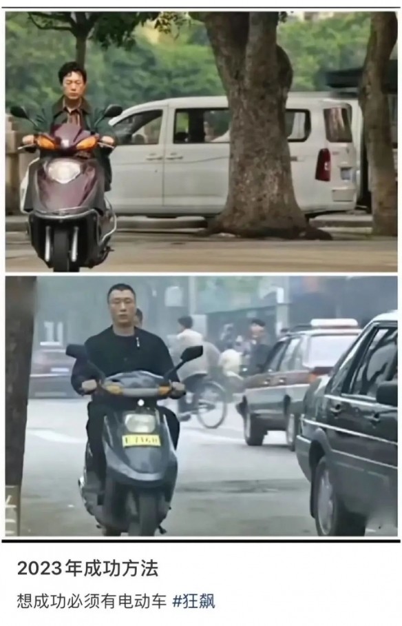 電視劇還沒播完,網友們豐富的「二創」就紛至沓來。他們把高啟強和劉華強兩個狠人的「做大做強」的原因進行總結提煉,得出「想成功就是得騎電動車」的嚴謹結論。