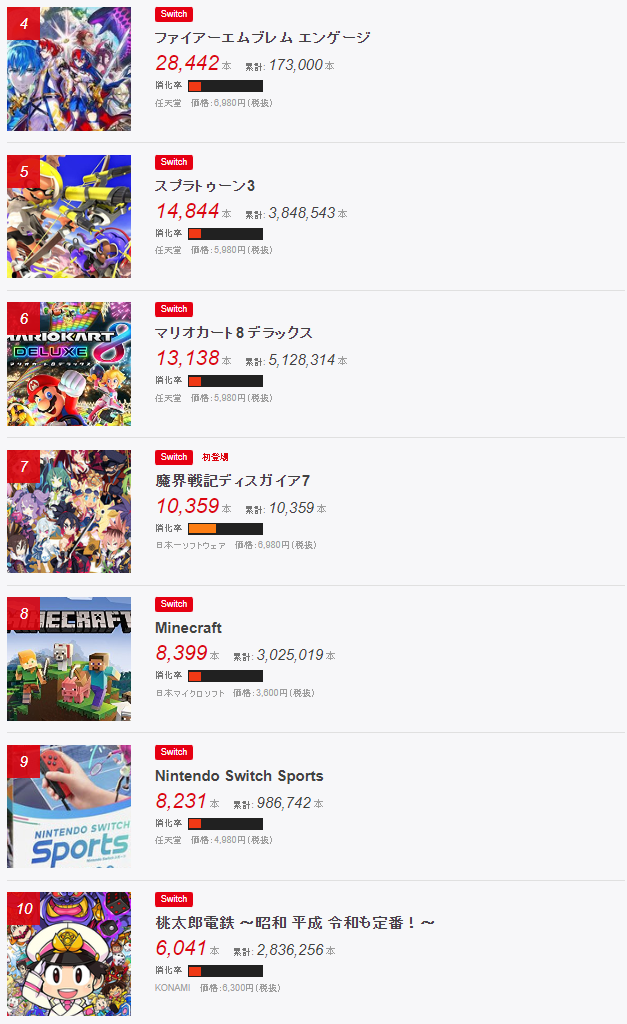 新作《魔界戰記7》也獲得第七名,順利進入前十。
