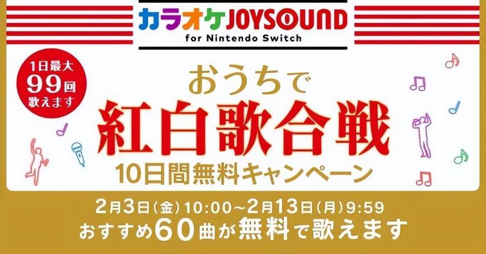 Switch唱歌軟體《卡拉OK JOYSOUND》於北京時間2月3日9:00至2月13日8:59舉辦紅白歌會免費歡唱活動。