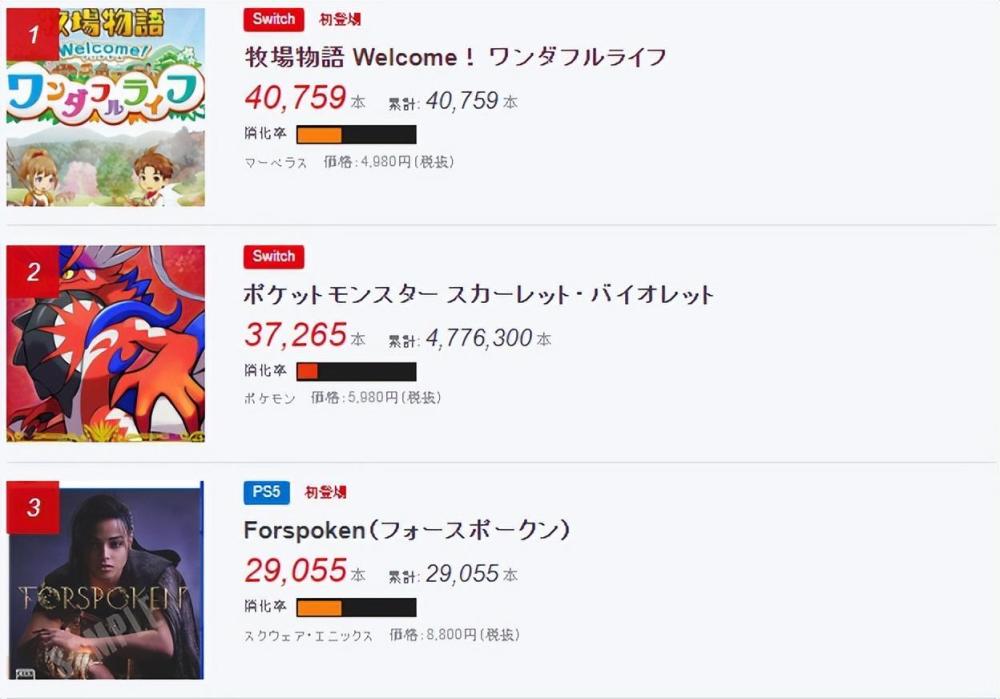 在1.23~1.29的新一周Fami通銷量榜上,《牧場物語Welcome:美麗人生》獲得冠軍,《寶可夢:朱/紫》仍然保持亞軍位置。PS5遊戲《魔咒之地》獲得第三名。
