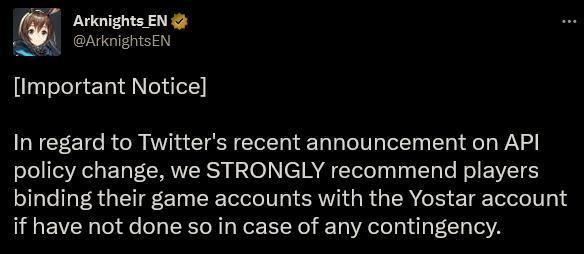 《明日方舟》官方推特同樣建議「未綁定遊戲賬號的玩家與 Yostar 賬號綁定,以防萬一。」目前歐美服和日服官方均已發布聲明。