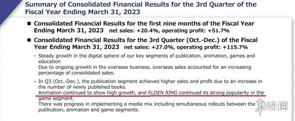 財報中提到,部分原因是《艾爾登法環》獲得了2022年TGA年度遊戲,讓其在海外地區的銷量大幅增長,也再次證實了這款遊戲經久不衰的人氣。