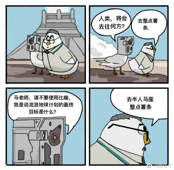 第51次迭代,他成為了周喆直和郝曉晞在海邊看到的弱智海鷗。在電影里,地球停轉後,海鷗卻依然活了下來,周老師贊嘆生態系統的頑強,在我看來這個鏡頭也在向了觀眾傳達一種希望——2500年後,人類一定會在4光年外的半人馬座建立新家園。