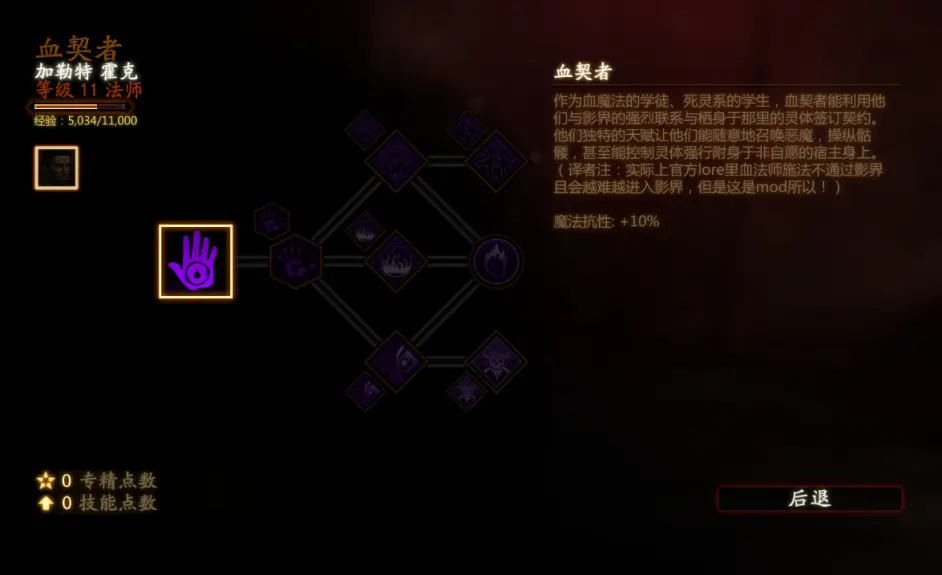 這個有點和lore衝突的地方,因為血法師其實是不通過影界施法的,但是畢竟是mod嘛,我個人也還沒有嘗試很多這個專精樹的技能,所以大家也可以體驗體驗。