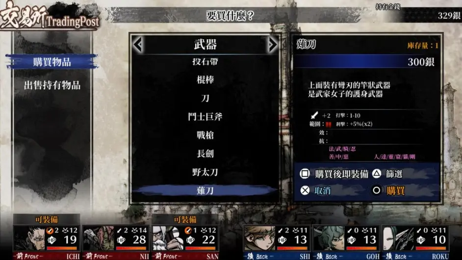 購買初期裝備是很重要的,初始後排單位沒有範圍2或者以上的武器,只能幹瞪眼。