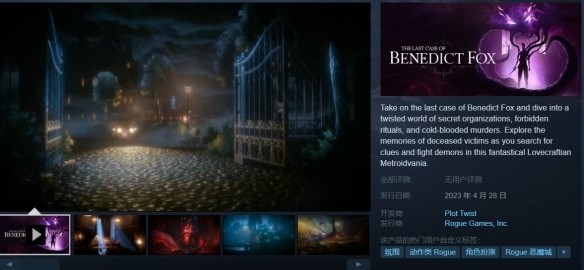 《本尼迪克特·福克斯的最後一案》遊戲中,以本尼迪克特·福克斯(BenedictFox)的最後一個案件為例,深入到一個充滿秘密組織、禁止儀式和冷血謀殺的扭曲世界。在這個夢幻般的類密特羅德惡魔城遊戲中,探索已故受害者的記憶,尋找線索,與惡魔戰斗。