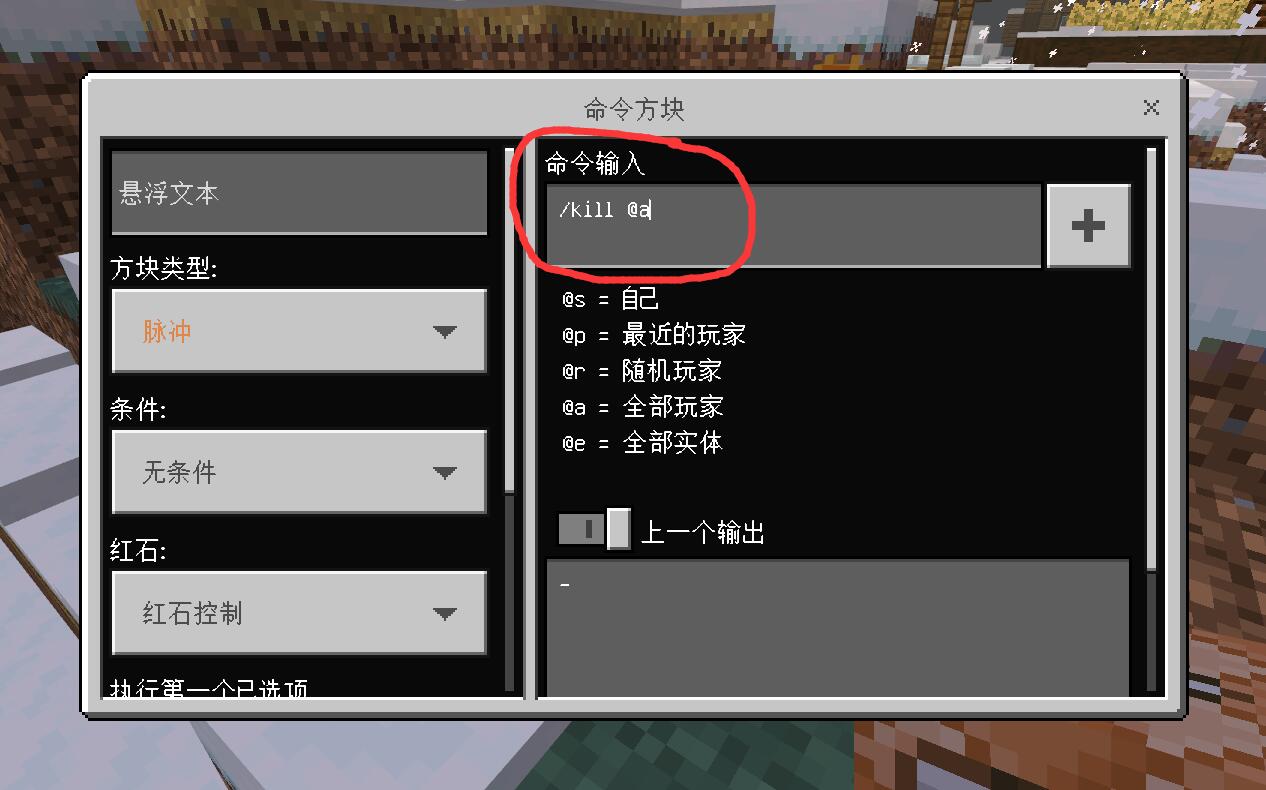 首頁 我的世界 問答 我的世界命令方塊怎麼用 ? 2022-07-01 在命令方塊里輸入指令,再在旁邊放一個踏板,踩上就能激活命令方塊里的指令。1,首先我們需要先輸入指令。2,然後在命令方塊旁邊放上踏板。3,最後踩上踏板就能激活命令方塊里的指令了。