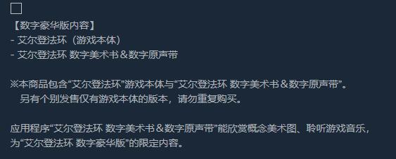 首頁 艾爾登法環 問答 艾爾登法環標准版和豪華版區別是什麼? 2022-07-01 區別在於豪華版為遊戲本體 數字美術書&數字原聲帶,標准版只有遊戲本體。1,首先我們進入steam艾爾登法環界面。2,然後往下滑動,就能發現豪華版比標准版多的內容了。