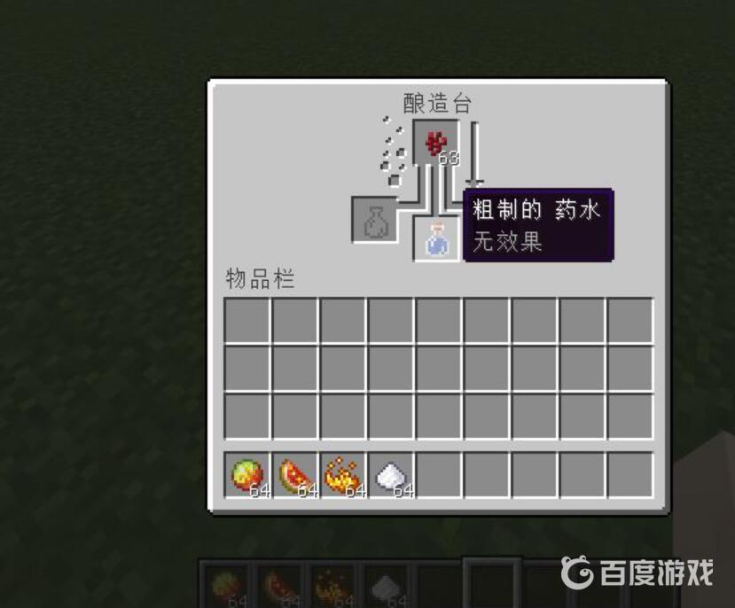 2,右鍵打開煉葯台,將水瓶放置在底部,然後頂部放置下屆疣,即可獲得粗糙的水瓶。