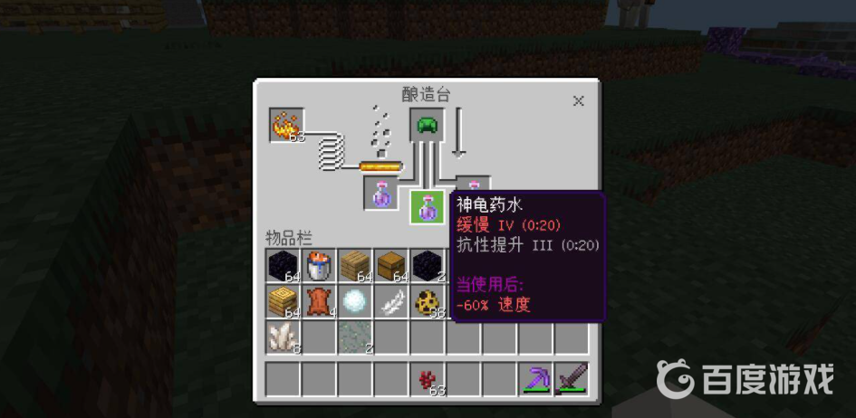 首頁 我的世界 問答 我的世界緩慢藥水怎麼做? 2023-02-09 1.首先我們需要准備三個水瓶,烈焰粉,下界疣和龜殼。2.然後右鍵點擊進入釀造台。3.接著在左側放上烈焰粉,下面放三個水瓶,上面放一個下界疣製作粗製的藥水。4.接著把上方材料替換成龜殼,就可以製作出緩慢藥水了。
