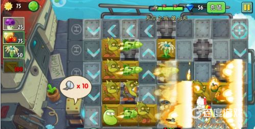 1、天空之城13天這個關卡不算難,玩家們只需要抵擋植物,防止他們抵達終點即可。不過這關還是挺講究策略的,首先在大噴菇旁邊種上三重射手,這時候還有足夠的陽光,可以種植寒冰射手,讓僵屍進攻速度降下來。
