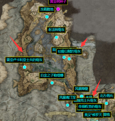 首頁 艾爾登法環 問答 艾爾登法環骨灰在哪? 2022-07-01 很多位置都有骨灰,獲得的方法也不一樣,具體位置可以看圖所示。使用骨灰是需要有道具招魂鈴的,不同的骨灰有不同的效果,玩家可以根據自己的需要去找。前期一般跟著主線劇情就可以獲得骨灰。