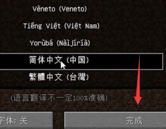 首頁 我的世界 問答 我的世界怎麼設置中文? 2022-07-01 1、進入游戲主界面,玩家點擊Options按鈕進入設置界面。2、進入後,玩家找到Language選項點擊進入。3、然後向下拉找到簡體中文點擊選中。4、然後玩家需要點擊完成按鈕。5、返回遊戲可以看到游戲已經設置為中文。