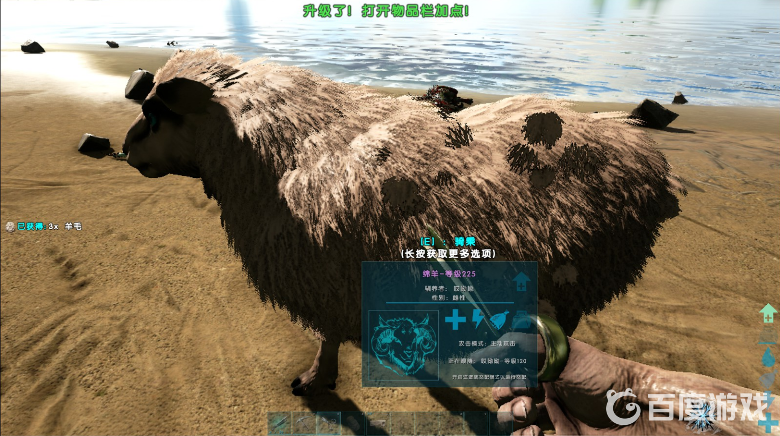 首頁 方舟:生存進化 問答 方舟毛皮頭發羊毛怎麼獲得? 2023-02-10 毛皮、頭發、羊毛獲得方法如下:1、毛皮通過擊殺毛皮動物採集屍體獲得,比如猛獁象、披毛犀等。2、頭發用剪刀(21級解鎖)滑鼠右鍵,選擇頭發長度,點擊接受,即可獲得頭發3、羊毛需要馴服綿羊,同樣用剪刀滑鼠左鍵即可獲得羊毛
