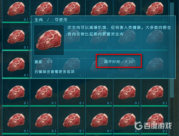 等到身上的肉都被拆分了,不疊加,然後每一塊生肉將同時開始腐壞倒計時,如下圖所示。