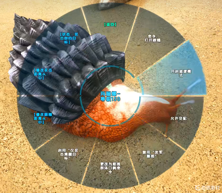 第二種方法,馴服瑪瑙螺,然後通過開啟巡邏模式來生產水泥,生產數量較少。