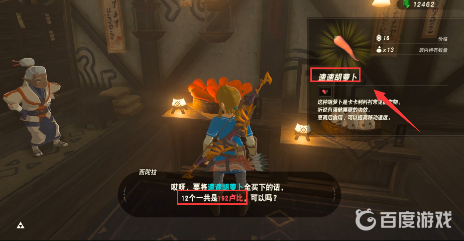 首頁 塞爾達傳說:荒野之息 問答 塞爾達速速胡蘿卜哪裡刷/ 2023-02-10 1.塞爾達速速胡蘿卜可以在卡卡利科村的雜貨店裡刷出,位置在哈格羅莫湖的旁邊,地圖上的位置如圖所示2.進入雜貨店,可以和西陀拉買速速胡蘿卜