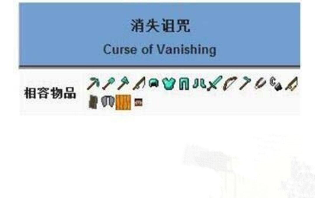 首頁 我的世界 問答 我的世界消失詛咒有什麼用? 2022-07-01 消失魔咒的作用:當玩家死亡時,物品欄中含有消失詛咒的物品會立即消失,而不會掉落在地上,有消失詛咒的物品可被丟掉。總結:玩家在游戲中無法通過附魔台來附消失詛咒,附有消失詛咒附魔物品,只能通過戰利品,去開寶箱獲得。