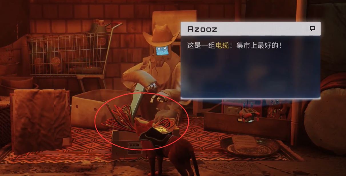 stray流浪貓咪在探險過程中想要推進劇情,有些時候是需要用到電纜道具。電纜是在貧民窟集市商人那裡獲取的,集市商人這裡的電纜是需要超靈清潔劑來兌換的。