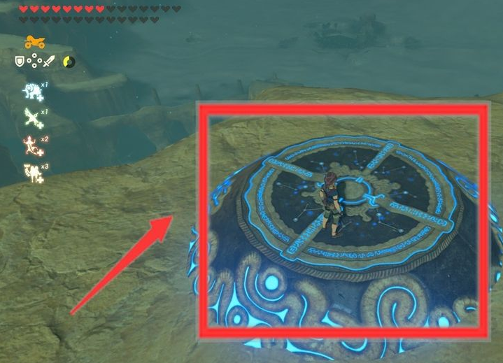 等到15:20左右的時候,塔的影子會移到祭壇上,此時用弓箭對准太陽,射箭, 這時祭壇旁邊會出現神廟。