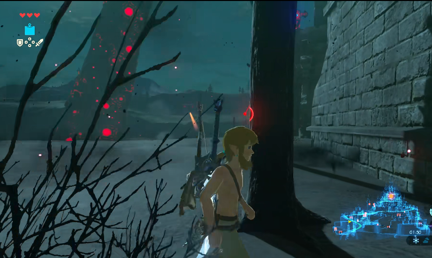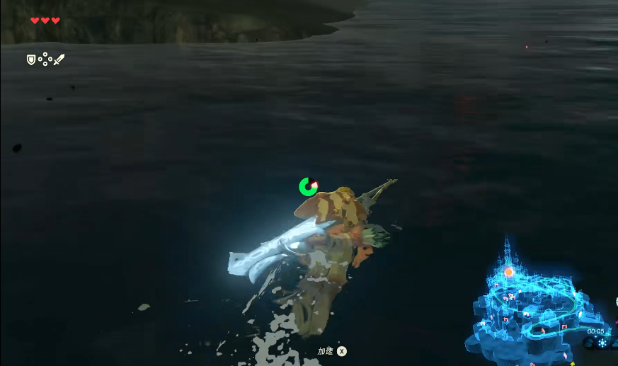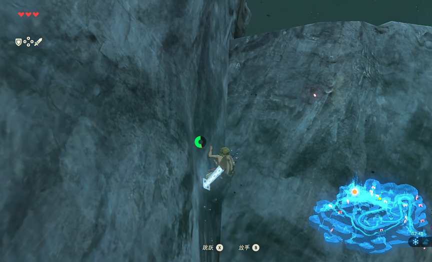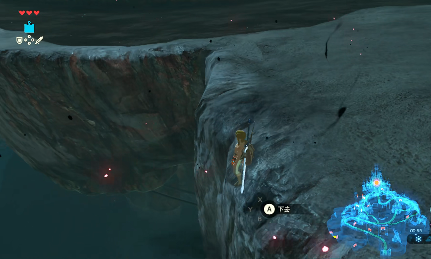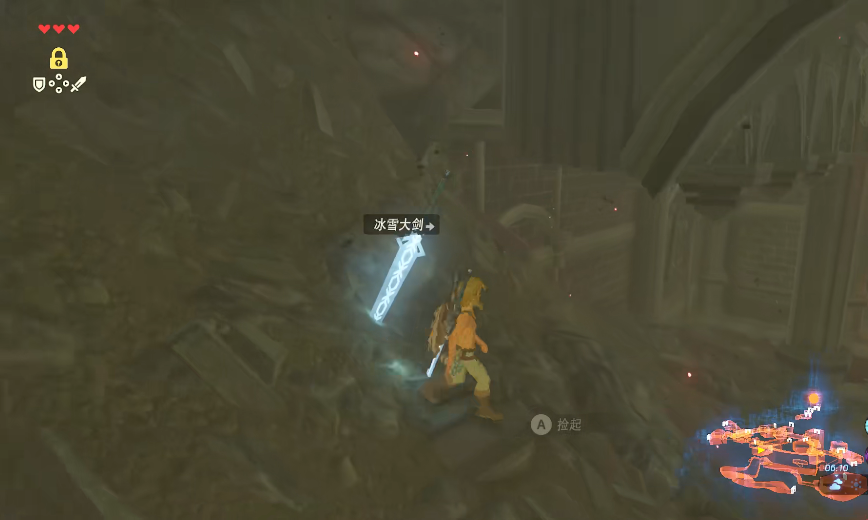冰劍:拿到火劍之後我們要到海拉魯城堡,它周圍有很多守護者,作為一個新手我們打不過,所以我們就順著城堡邊的城牆跑,這一路上有幾個寶箱我們可以開了。