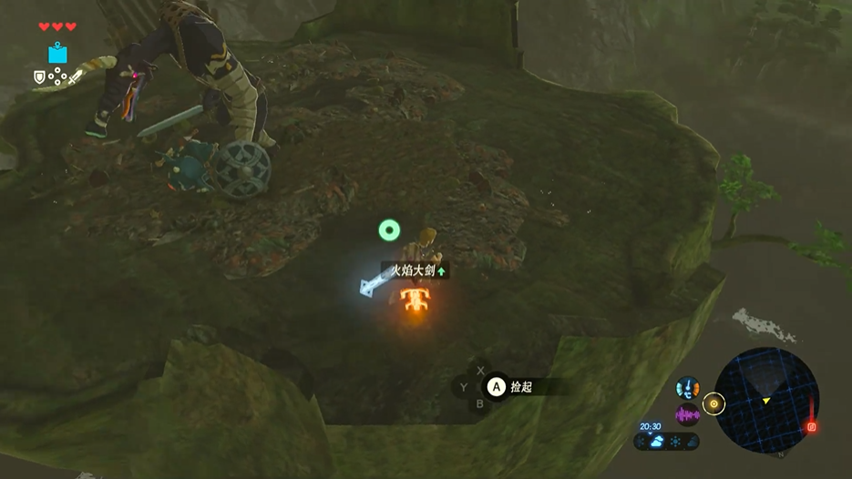 火劍:我們在高塔上用放大鏡能看到初始之塔,下面有很多馬,我們往山上跑,來到山後面,有一個大木樁,也就是在腐朽的千年古樹上有一把火焰劍,盡量在不是雨天的時候去,直接飛到古樹上撿走跑就行,那兩只怪物超級蠢。不用和他們糾纏。