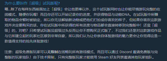 同時,為了讓更多的玩家嘗試到有趣的遊戲內容,《小動物之星》在Steam上的「免費試玩版」和付費版的遊戲性部分是沒有任何差異的,唯一的區別在於能否獲取裝飾物品(同樣,移動版目前看來也會是純外觀付費)。