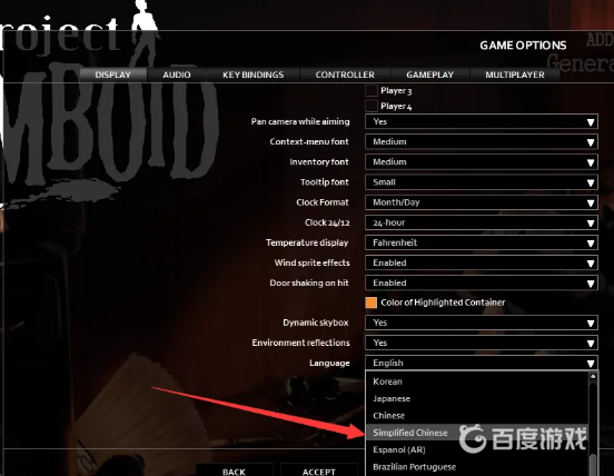 首頁 僵屍毀滅工程 問答 僵屍毀滅工程怎麼設置中文? 2023-02-10 1、首先打開游戲的主頁,並在左側的選項中找到options。2、進入後點擊DISPLAY,在該設置頁面下滑,找到最下面的language選項。3、最後找到Simplified Chinese(簡體中文)即可設置。