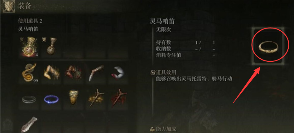 3、然後在遊戲界面的道具欄中切換道具,切換到靈馬哨笛。