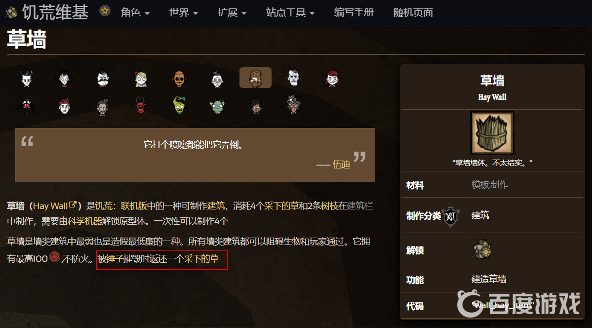 首頁 飢荒聯機版 問答 飢荒牆怎麼拆? 2023-02-10 想要完全拆除牆體需要使用鎚子,不同的牆體在拆除後返還的道具是不同的,草牆在被鎚子摧毀時返還一個採下的草。木牆被鎚子摧毀時返還一個木頭。石牆被鎚子摧毀時返回一個岩石。
