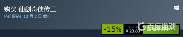 4、由於仙劍奇俠傳三是付費遊戲 需要購買後才可以下載 (價格為28元 目前打折23.6元)購買完成後即可下載