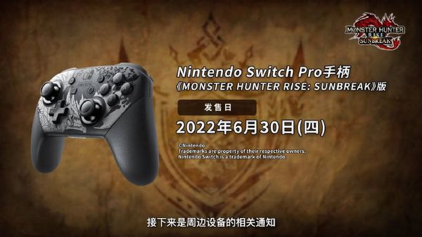 《怪物獵人崛起:曙光》限定版Switch Pro手柄將和本作同日發售,手柄正面印有本作主題魔物「爵銀龍」的設計圖。