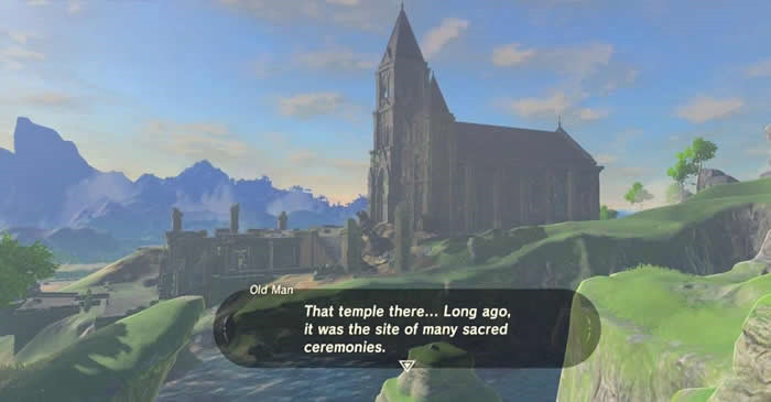 湖泊旁邊有一座破敗的建築——時之神殿。殿內可獲得旅人之弓。