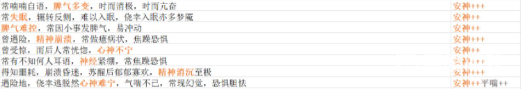 (2)安神定心類,關鍵字:脾氣差,失眠,精神不濟。