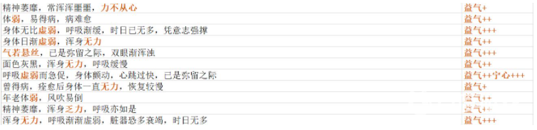 (3)益氣強身類,關鍵字:虛弱無力,力不從心。
