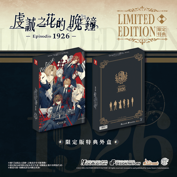 Game Source Entertainment (GSE) 宣布,將與「Idea Factory」旗下的乙女遊戲品牌「Otomate」合作推出人氣女遊戲續作《虔誠之花的晚鍾-1926-》Nintendo Switch™亞洲繁體中文版。GSE乙女部今天將首度公開《虔誠之花的晚鍾-1926-》繁體中文版限定封面盒裝圖的相關資訊,同時也會追加公布《虔誠之花的晚鍾-1926-》特典的完整情報,內容物相當豐富,請各位粉絲把握預購機會!