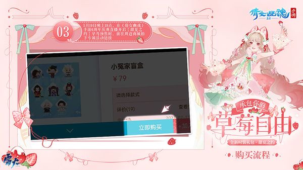 5月19日晚18點,《倩女幽魂》手游六周年慶典直播將開啟【甜夏之約】早鳥預售!限量66份禮包,先到先得,售完即止!禮包價格只需100元,除30天激萌套裝外,更有【李大橘草莓口味冰淇淋】、【阿吉豆AJIDOU草莓首飾禮盒】、【倩女手游專棚丹東草莓】三重特典福利甜寵到底,承包你的草莓自由!在浪漫三界里,穿上【甜夏之約】,一鍵獲得3重福利!同時,也讓我們相約5月19日晚18:00 ,倩女幽魂周年慶直播間,不見不散~