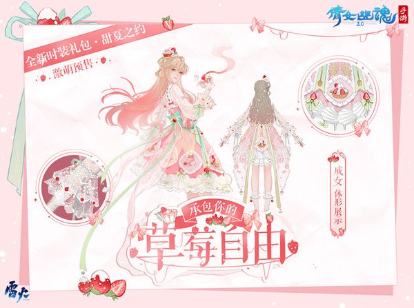 倩女手游第四彈周年慶直播福利曝光,草莓也准備好收割少女心啦~【甜夏之約】禮包開啟限時預售,100元即可獲得全新甜美時裝,以及價值700+的品牌聯動大禮包!超可愛草莓主題時裝、草莓口味冰淇淋、草莓首飾禮盒、更有專屬丹東大草莓。在這個夏日將甜度調高,讓《倩女幽魂》手游承包你的草莓自由!
