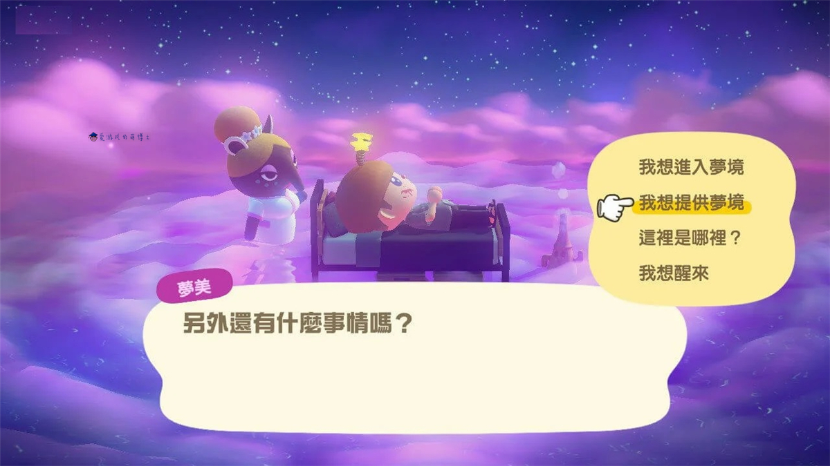 《集合啦!動物森友會》更新的「1.4.0」版本中添加了「睡覺夢游」這個功能。玩家們能夠通過夢境參觀世界各地的島嶼,而且在夢境中島主的島嶼非常安全,不會受到破壞。